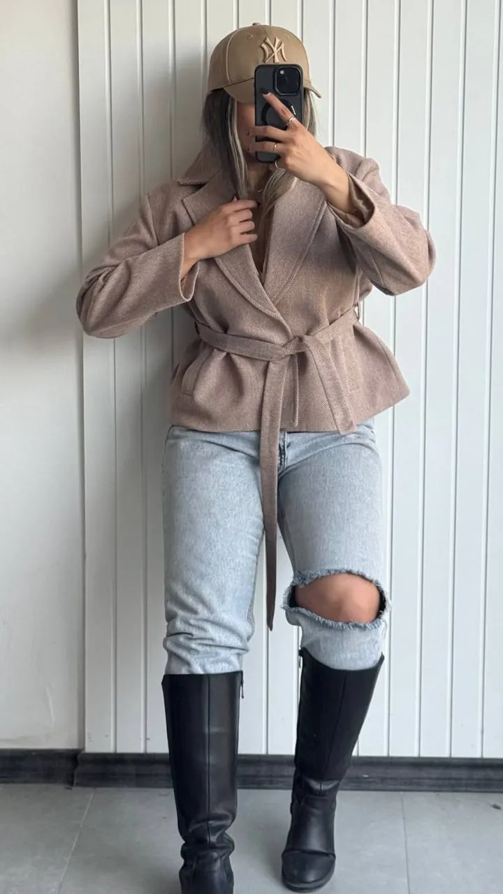 کت زنانه ی کمربند دار فریال |feriyal